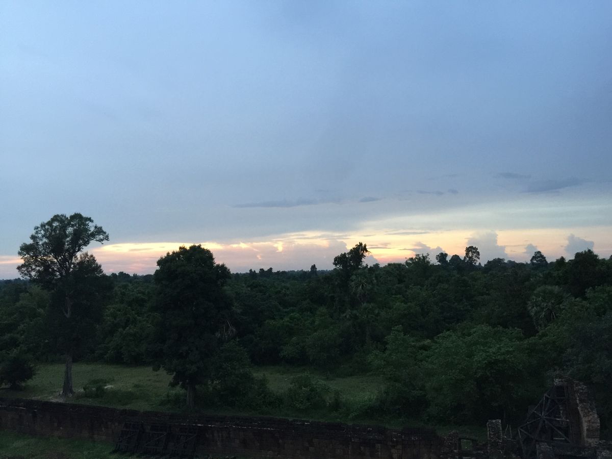 日が沈む前にプレループ遺跡へ。いざ夕日鑑賞!でしたが…曇ってました。やはり雨季は朝日・夕日ともに期待できませんね。