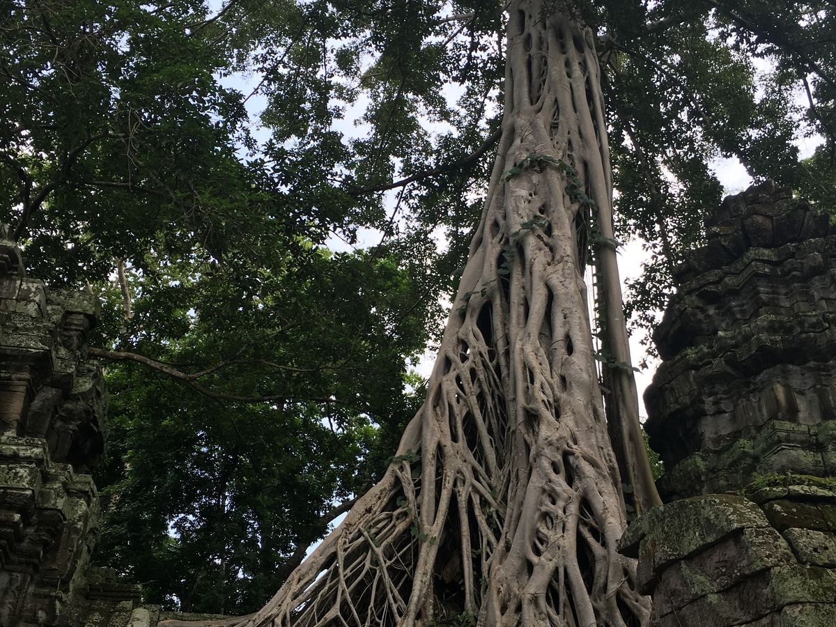 一旦ホテルに戻り朝ごはん後、8時から出発!アンコールトム・タプロム観光を楽しみました。その後ランチでクメール料理を食したのですが…ここの食事があまり好きにはなれなかった!というのも私たち夫婦は香草類が結構苦手なのですが、レストランの料理は香草をふんだんに使用したものだったからです。なので香草好きにはたまらないと思います。