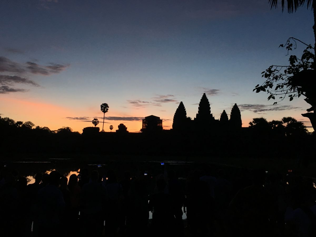 朝4時台から夜の9時までの長丁場です。僕の場合は2回ほどホテルに帰って休憩がありましたが、それでも結構大変でした。しかしガイドさんは日本語も流暢ですし、遺跡の歴史について詳しく教えてくれます。夜のアプサラダンスもすごく綺麗で楽しめました。朝日は曇りで見れませんでしたが、満足です。
