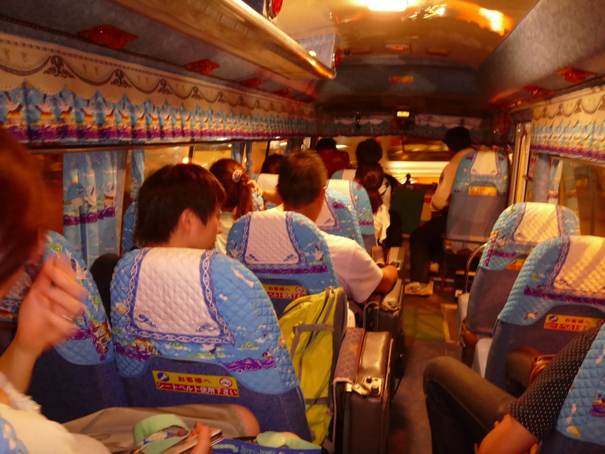 写真にあるとおり、広々としたバスに11人の参加で快適でした。