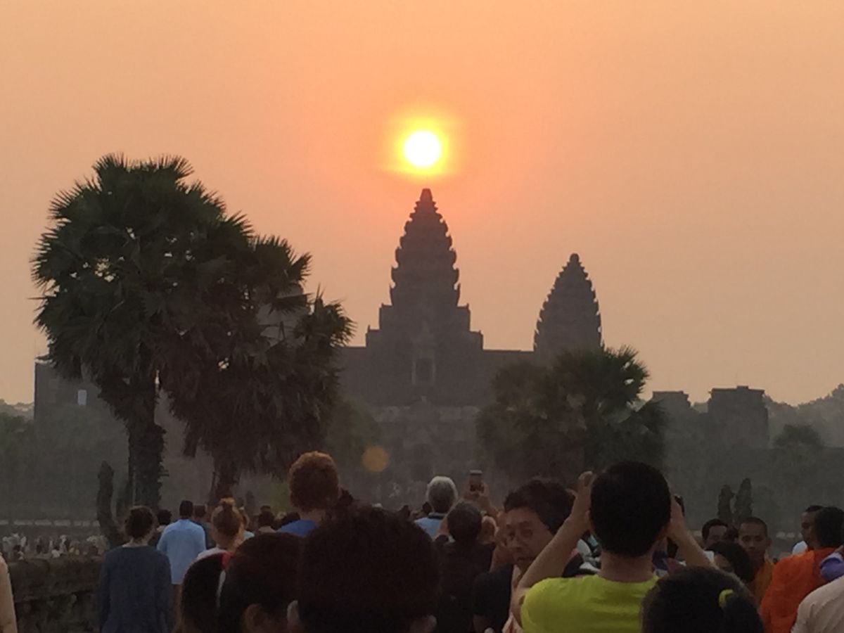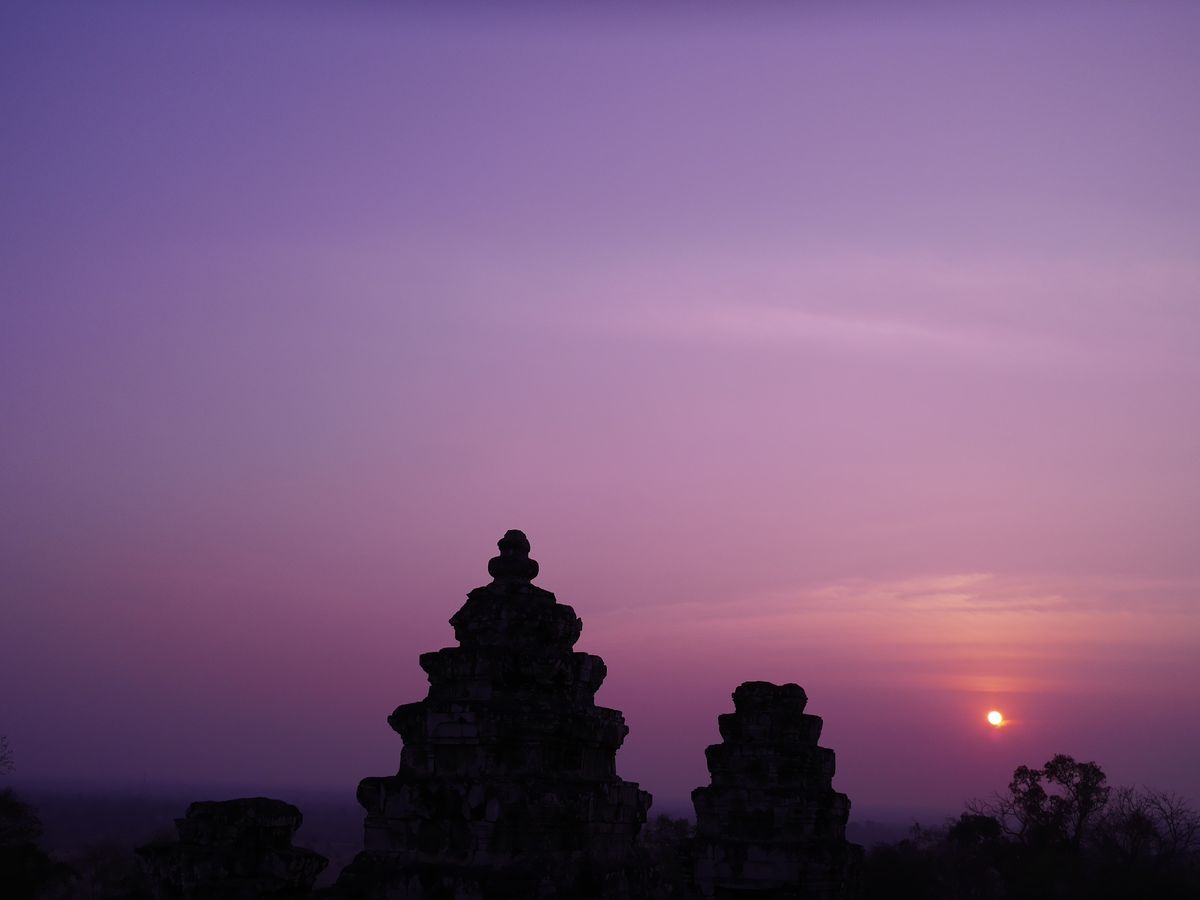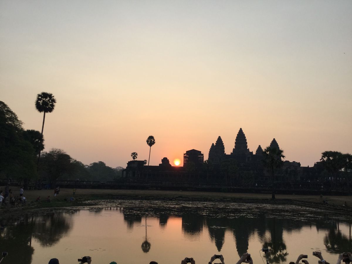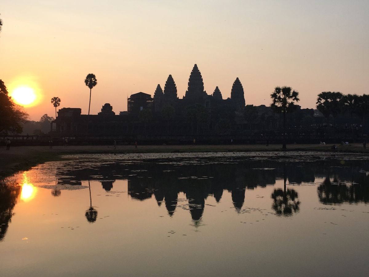朝日を見るために朝早く起きましたが、アンコールワットの朝日は幻想的で早起きした甲斐がありました。