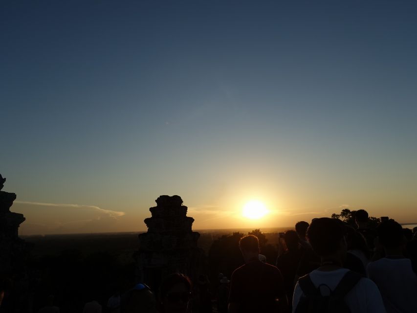 初めてカンボジアを旅行した50代の男です。21歳の息子と二人で参加させていただきました。本ツアーは、一日で効率的に観光したい初心者のわれわれには最適でした。ガイドが、鑑賞や撮影ポイントについて細かく指示を出してくれたので、もれなく楽しめました。夕日鑑賞場所は入場人数に制限があるとのことで、1時間以上早く行って日が落ちるのを待っていました。待ちくたびれて嫌気がさした頃には、入場を待つ長蛇の列ができていました。ガイドに従って、待った甲斐があったと思いました。