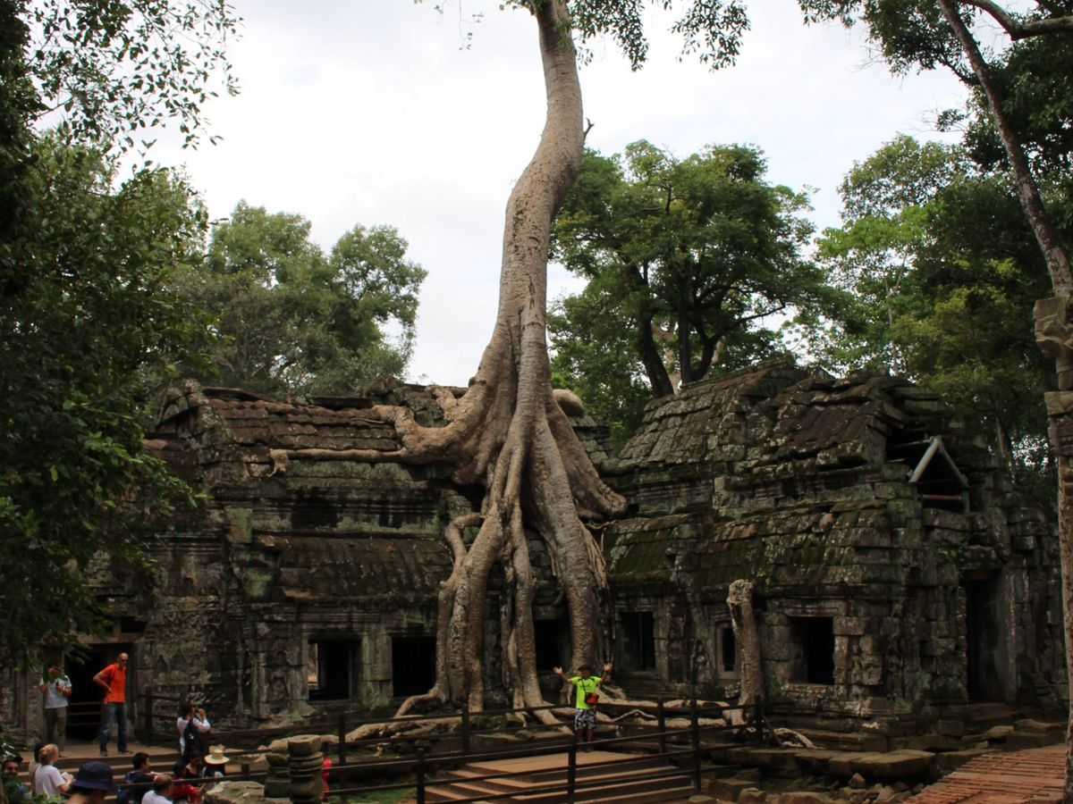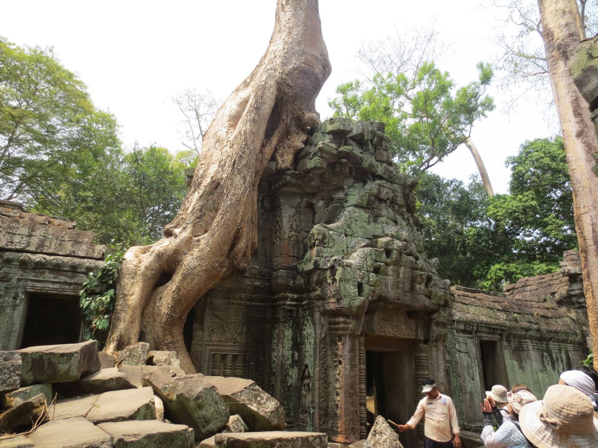 今回、アンコールワットのサンライズとタ・プローム、ベンメリアを見たいなと思っていたので、このツアーに全部乗っかることにしました。8月14日は第三回廊に登れない日と知ったので、前日にアンコールワットとアンコール・トムはトゥクトゥクで回ったのですが、これが良かったようです。アンコールワットは日の出鑑賞はかなり時間を取ってあったのですが、午前中の観光については個人によって評価がわかれると思います。アンコールトムも入場はバイヨンのみで、象のテラスや王のテラスは遠目に見るのみでした。アンコールワットとアンコールトムをじっくり見たければ、もう一度時間を変えて来たほうがいいと思います。逆にタ・プロームは結構じっくり観光できましたし、午後のベンメリアにも言えることですがガイドがいないと写真のポイントすら見過ごす可能性があります(アンコールワットのレリーフについても同じことが言えます)。ベンメリアもデフォルトのコース以外にガイドさんの個人的な観光コース(?)を歩くことが出来ましたので、遺跡大好きな人にとってはカメラのバッテリーは満タンで参加されることをおすすめします。
