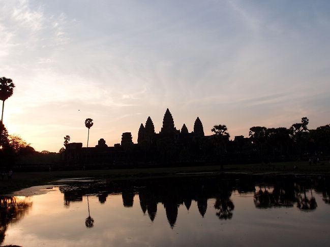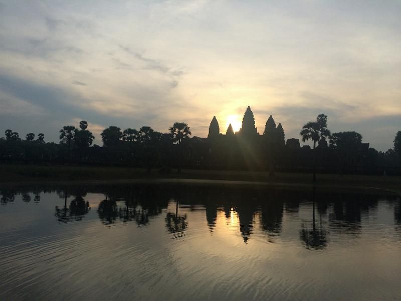 朝一番にアンコールワットに到着し入場券を購入。購入の際にガイドさんがサポートして下さります。雲が多く朝日はきれいに見えなかったのですが感動しました。アンコールワットで朝日を見学した後、近くのレストラン?屋台?で朝ごはんを食べることができました。他のレビューを見ているとホテルに一度戻って朝食を取られている方もいるようなので日によって違うのかもしれません。