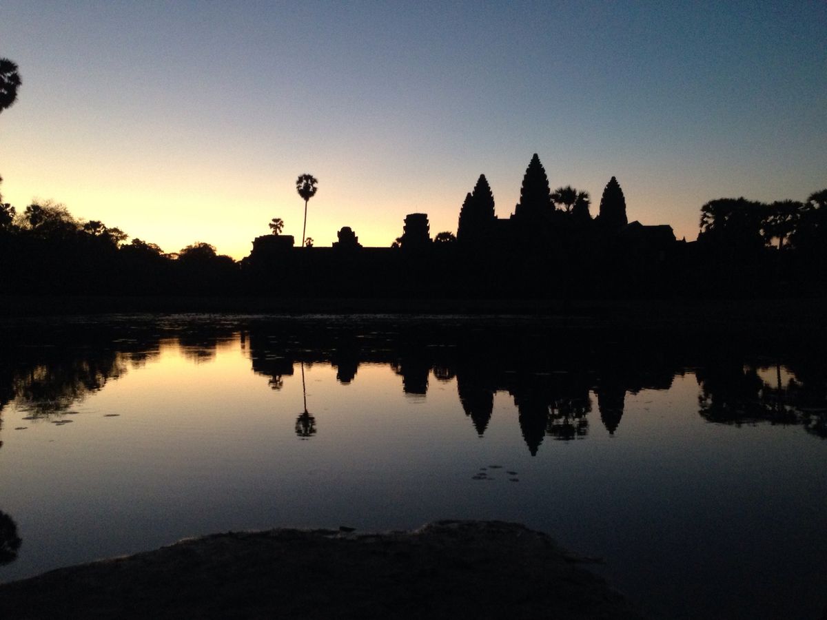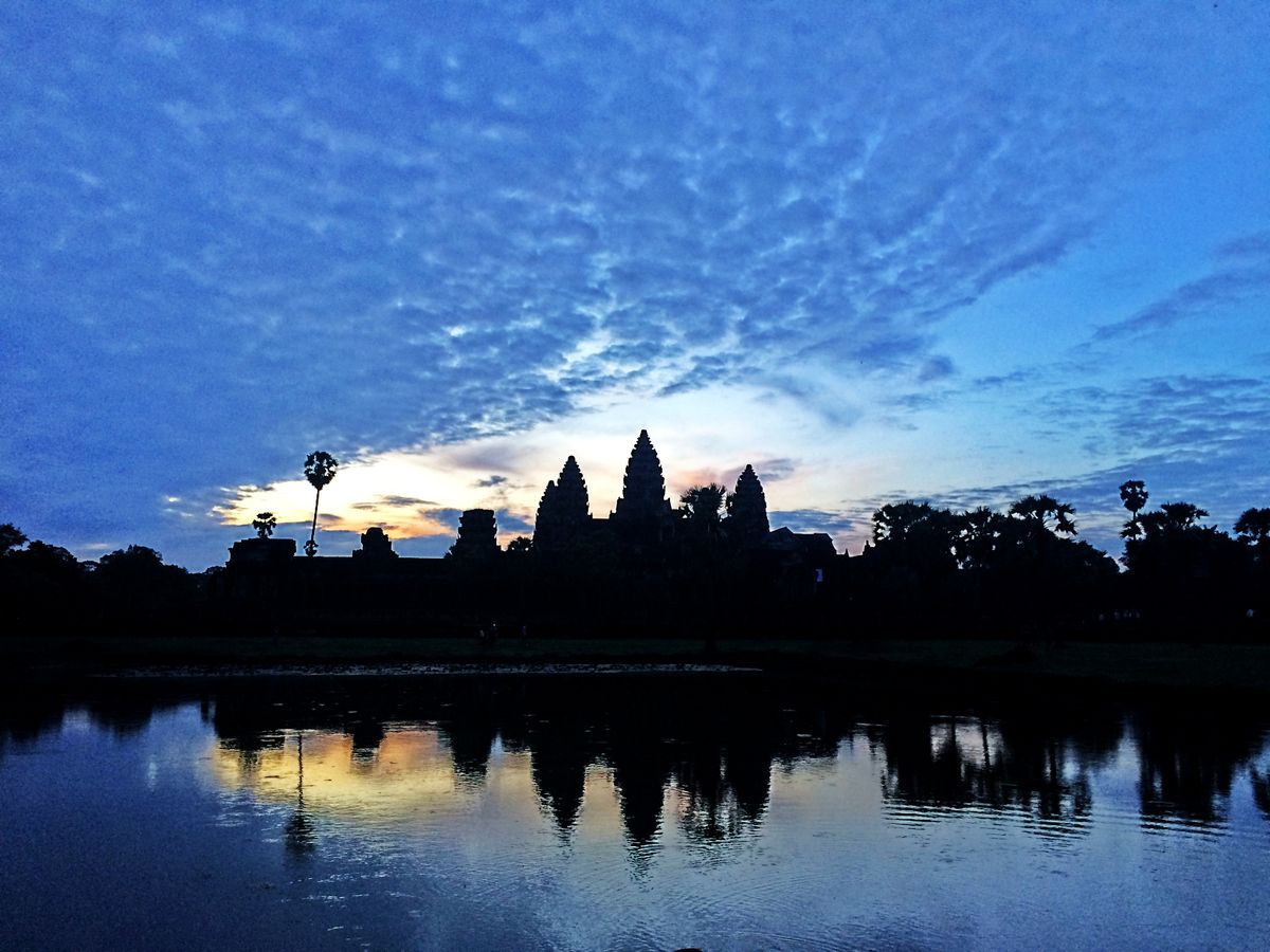 眠い目をこすりながら、薄暗いアンコールワットに向かいました。