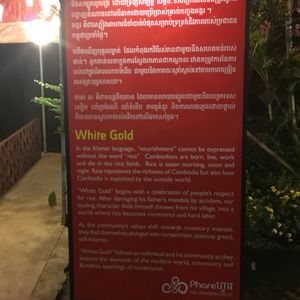 さて、会場の外のことだが、バー、お土産売り場、スナック、オープンの食堂も併設している。私の場合は、20時開始のプランで7時前には施設に到着、間の1時間は夕食として時間を過ごす。時間に間延びは感じなかった。施設のスタッフはみんな英語で丁寧に対応してくれた印象である。(シェムリアップではドライバーですらの英語力に好印象を覚えますが。)来場者には手製のうちわを貸してくれます。細かな気配りの良さも感じた。
