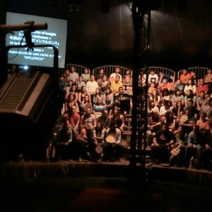 いかにもサーカス小屋という感じの小ぶりな会場で、どの席からも舞台に近いですが、C席は側面側の自由席で柱の陰になったりするので、早めに会場入りした方が良いと思います。(開場は開演30分前ですが、すでに行列ができていました。)