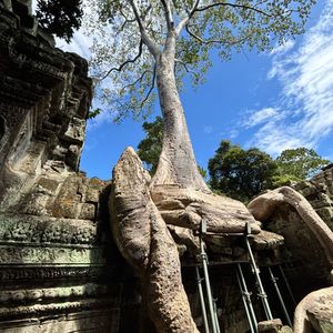 タ・プロームは、カンボジアにあるアンコール遺跡のひとつです。アンコール・トムの東側に位置する寺院の遺跡です。東西1000m、南北600mという広大なラテライトの壁に囲われた中に建っています。タ・プロームとは「梵天の古老」という意味で、ジャヤーヴァルマン7世が、母を弔うために建てたものとされています。ガジュマルの浸食がとても激しい遺跡で、発見当初の様子に近い形で保存されており、歴史を感じることができます。また、映画「トゥーム・レイダー」を撮影した場所ということで知られています。