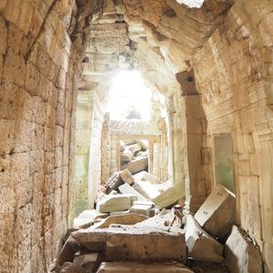 タ・プロームは、カンボジアにあるアンコール遺跡のひとつです。アンコール・トムの東側に位置する寺院の遺跡です。東西1000m、南北600mという広大なラテライトの壁に囲われた中に建っています。タ・プロームとは「梵天の古老」という意味で、ジャヤーヴァルマン7世が、母を弔うために建てたものとされています。ガジュマルの浸食がとても激しい遺跡で、発見当初の様子に近い形で保存されており、歴史を感じることができます。また、映画「トゥーム・レイダー」を撮影した場所ということで知られています。