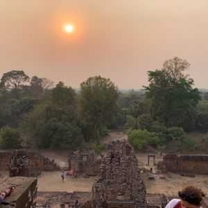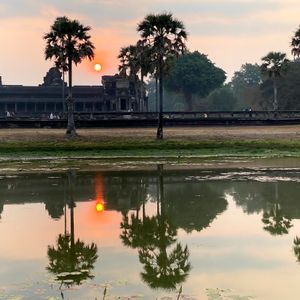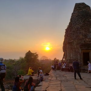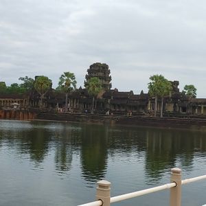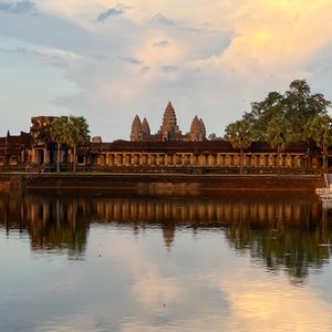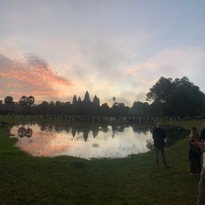 娘とのカンボジア旅行。朝4時に起きて支度してホテルのロビーへ。時間通りにガイドさんが迎えに来てくれました。アンコールワットに着き朝日が出てきた瞬間、思わず声が出ました。あんなに大きくてあんな色をしているとは。遺跡めぐりもガイドさんの案内のおかげで楽しい1日になりました。ランチのクメール料理も美味しく完食。ディナーのBBQのエビが美味しすぎて3回おかわりに行きました。ガイドさんが上手に写真を撮ってくれて、大変良い思い出となりました。