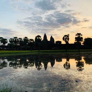 • 朝日が昇る直前の池に映った、逆さアンコールワット