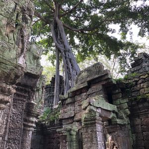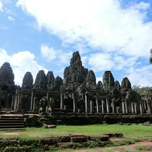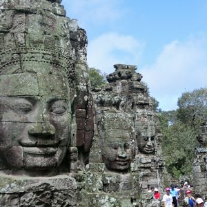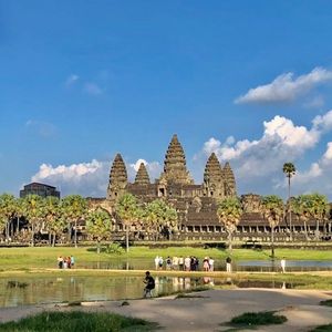 10/10雨季の終わりだったので朝日を見に行く時はパラパラ雨が降ってましたが、雨も上がり少し日が射すモノクロ写真の様なアンコールワットも素敵でした。一度ホテルへ戻り朝食、少し部屋で休憩ま出来ます。8時半にお迎えが来てアンコールトムの見学は良い天気になって青空が写真映えしました。ガイドさんはとても親切でアンコールワットを摘まんで見える写真を写してくれたり、ツアー客みんなのパノラマ写真を3ヵ所で写してくれました。それぞれ個性的な写真になっていてガイドさん最高です。お陰で友達が出来ました。すごく日本語が上手ではありませんでしたが、遺跡の説明も一生懸命して頂き良くわかりました。夕陽を見に行った時もベストスポットを教えてくれたからめっちゃ見映えする写真が写せました。ご飯はお昼、夜共に美味しかった(^o^)日本人の口に合っています。初めてのカンボジアが最高の旅になりました。ガイドさんにも本当に感謝しています。