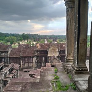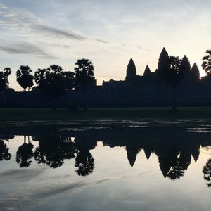 朝日は雨季の為、雨でしたが、それでも綺麗でした。アンコールワットが水面にうつるのは雨季しか見られないそうなので、水面にうつる姿を見れてとてもよかったです。