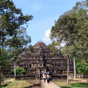 プノン・バケン寺院は、カンボジアにあるアンコール遺跡のひとつです。標高65mのプノン・バケン山の上に建つヒンドゥー教の寺院で、アンコールワット寺院の北西1,300m、アンコールトムの南400mの位置にあります。プノン・バケン山はプノン・クロム山、プノン・ボック山とともに、アンコール三聖山のひとつです。山のふもとまでシェムリアップ中心部からトゥクトゥクで10分、ふもとから寺院までが徒歩で10分ほどです。寺院の高さは約47mで、主祠堂は、アンコール遺跡のなかで最も高い位置に建っています。