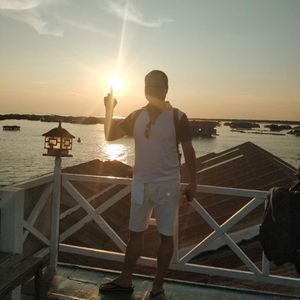 • 湖上のレストランで夕日鑑賞。ニシキヘビ首飾り1ドル。