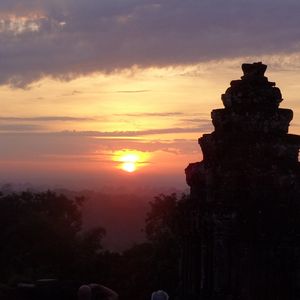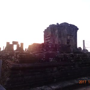 両親の年齢・体力的にも最後になると思う海外旅行にシュムリアップへ・・・連日雲の多い滞在でしたが、当日は絶妙のタイミングですばらしい夕日を鑑賞することが出来ました。夕日のお陰でいい親孝行ができたかなと思っています。