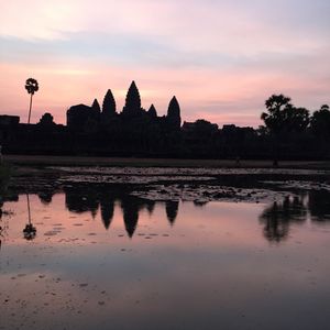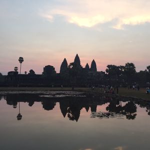 天候がよければ、朝焼けと水面に映るアンコールワットを同時に見ることができます。