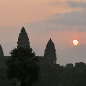 アンコールワットでの朝日鑑賞は、朝日で赤く染まった空と水面に映るアンコールワットをみることができる人気のツアーとなっております。