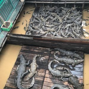 ゆっくりしたボートでノンビリと景色を眺めて向かった先で降りたらワニがたっくさん!