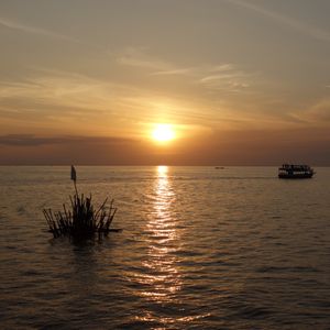 トンレサップ湖に沈んでいく夕日のお写真、とても素敵ですね。