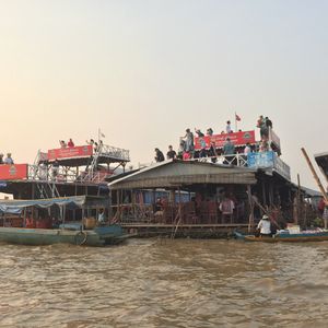 乾季に行きましたので、水位が下がっていましたが、船や、港、水上の学校を見たり舟ドライブイン?から夕日鑑賞を体験できました。ワニの養殖を覗いたり、ワニ肉の試食もしてみました。少し生臭いものでした。雨季には水位が上がるそうで、また別の湖面になるのだと思います。雨季に来るのも面白いと思いました。ガイドさんも親切で、丁寧でした。