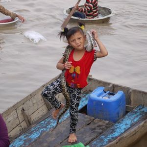 トレンサップ湖は東南アジア最大の湖で、カンボジアにあります。豊かな水と盛んな漁業で人々の生活を支えていて「カンボジアの心臓」と呼ばれます。乾季でも琵琶湖の3倍、雨季には琵琶湖の10倍以上の大きさになります。水上生活者の数も世界最大規模で、100万人が住んでいるとも言われいくつもの村があります。その水上村をボートで見学するツアーがあり、観光名所になっています。シェムリアップからトゥクトゥクで40分くらいの距離にあります。トレンとは「川」、サップとは「淡水湖」という意味です。