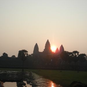 朝早く起きるのはつらかったけど、ピンク色の空とアンコールワットのコンビネーションが最高でした!!