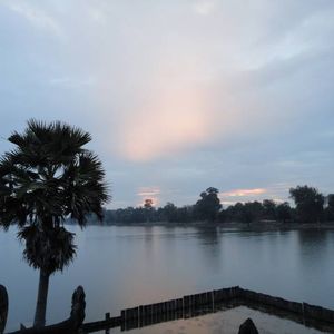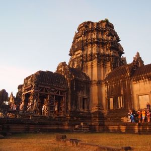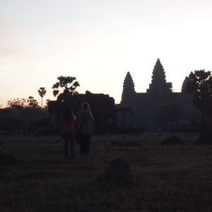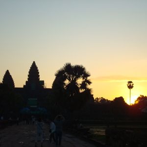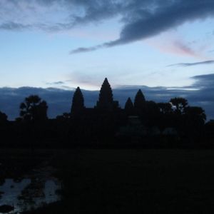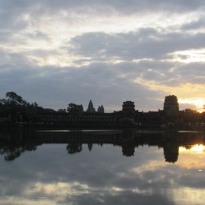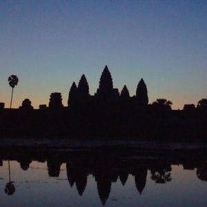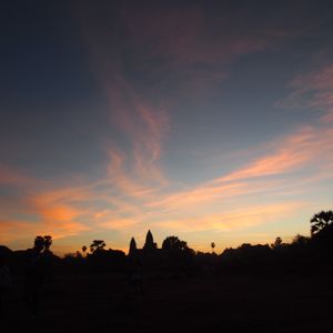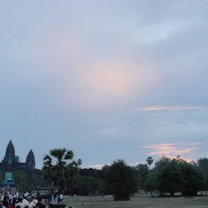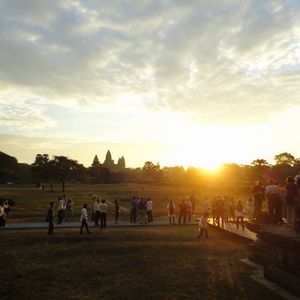 残念ながら、ガイドブック等で想像していたような朝日が雲が厚くかかっていたため見れませんでした。それでも、朝焼けに映し出されたアンコールワットは美しかったです。また機会があれば参加したいです。