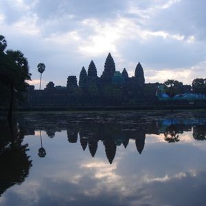 実際、曇っていてなんとなく明るくなってきたな~ぐらいだったけれど、幻想的で、水に移るアンコールワットはとてもきれいでした。