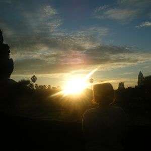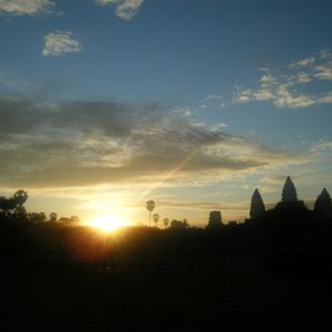 真っ暗な内からアンコールワットに行き、日が昇るのをひたすら待つのですが、徐々に日が昇りアンコールワットがうっすら見えてくる頃はとても幻想的できれいでした。