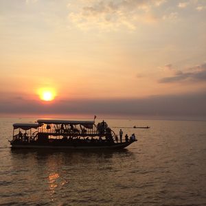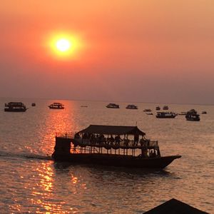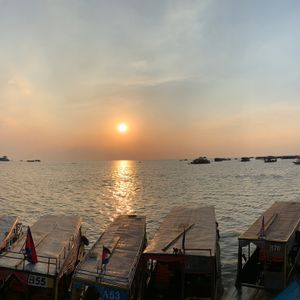 周りに観光客が沢山いてあまりにもゴミゴミしていたのでガイドさんが気を利かせて下さり貸切ボートで静かな沖まで出ました。そこでエンジンを切ってプカプカと静かにカンボジアの美しい夕陽を眺める事が出来ました。