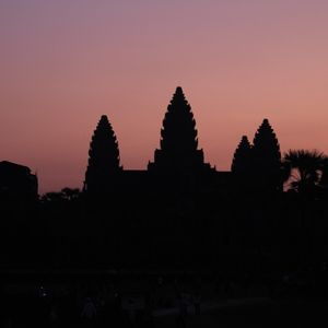 朝一で遺跡のチケットを購入、アンコールワットの朝日鑑賞場所には日の出の1時間前くらいに着きました。暗闇の中、アンコールワットの参道について説明を受け、日の出を見るために池の辺りにスタンバイします。すごい多い人ですが、角度や場所を変えればキレイに見えます。ちょうどアンコールワットの塔の後ろ辺りから日が昇りはじめるので本当に幻想的でした!