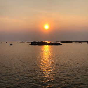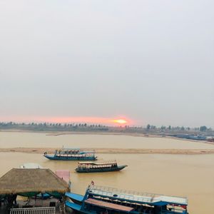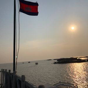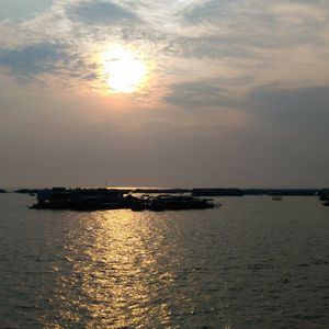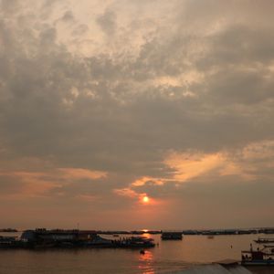 トンレサップ湖からの夕日、曇り空で見れず、残念です。