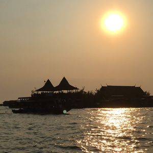 水上レストランの2階、3階で夕日鑑賞。中国人がいろんなポーズで写真撮ってました。