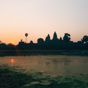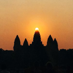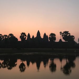 朝焼けは幻想的なシルエットのアンコールワットを見ることができ、影絵の世界に入り込んだようにきれいでした。