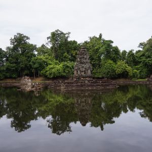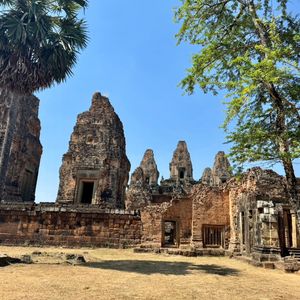 プリヤカーンは、カンボジアにあるアンコール遺跡のひとつです。仏教とヒンドゥー教の習合寺院で、敷地は東西800m、南北700mという広い寺院です。アンコールトムから北東の方向に1.5kmほどのところに位置しています。この寺院は砂岩とラテライトで建てられていて、溶樹の繁殖や彫像の盗難の影響が多い寺院のひとつです。プリヤカーンとは「聖なる剣」という意味で、かつて境内で発見された剣に由来します。現在この剣は、プノンペンの国立博物館にあります。
