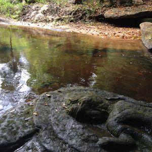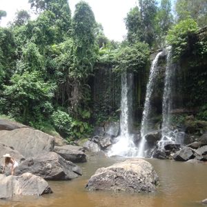 クバールスピアンはちょっとした山道を1,5キロ歩きます。でも、途中の道は歩きやすいので遺跡発見気分でジャングルを歩くのも良いと思います。登った後に川の中に遺跡があるからまた趣がある感じですよ。