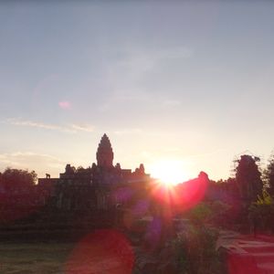 バコン寺院は、カンボジアにあるアンコール遺跡のひとつで、その中でもロリュオス遺跡群のひとつです。ロリュオスはアンコール地域に王都が置かれる前に、王都が置かれていた場所です。その時代に創建された3寺院をロリュオス遺跡群と呼び、バコン寺院は、ロリュオス遺跡群の中でも最も規模の大きな寺院です。バコン寺院は5層のピラミッド型に構成されていて、アンコールワットの原型となったと言われています。シェムリアップから南東に13kmほどのところにあります。