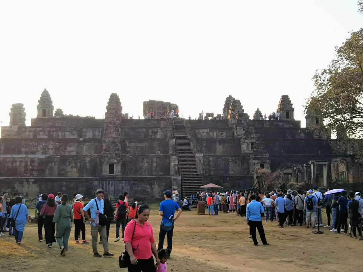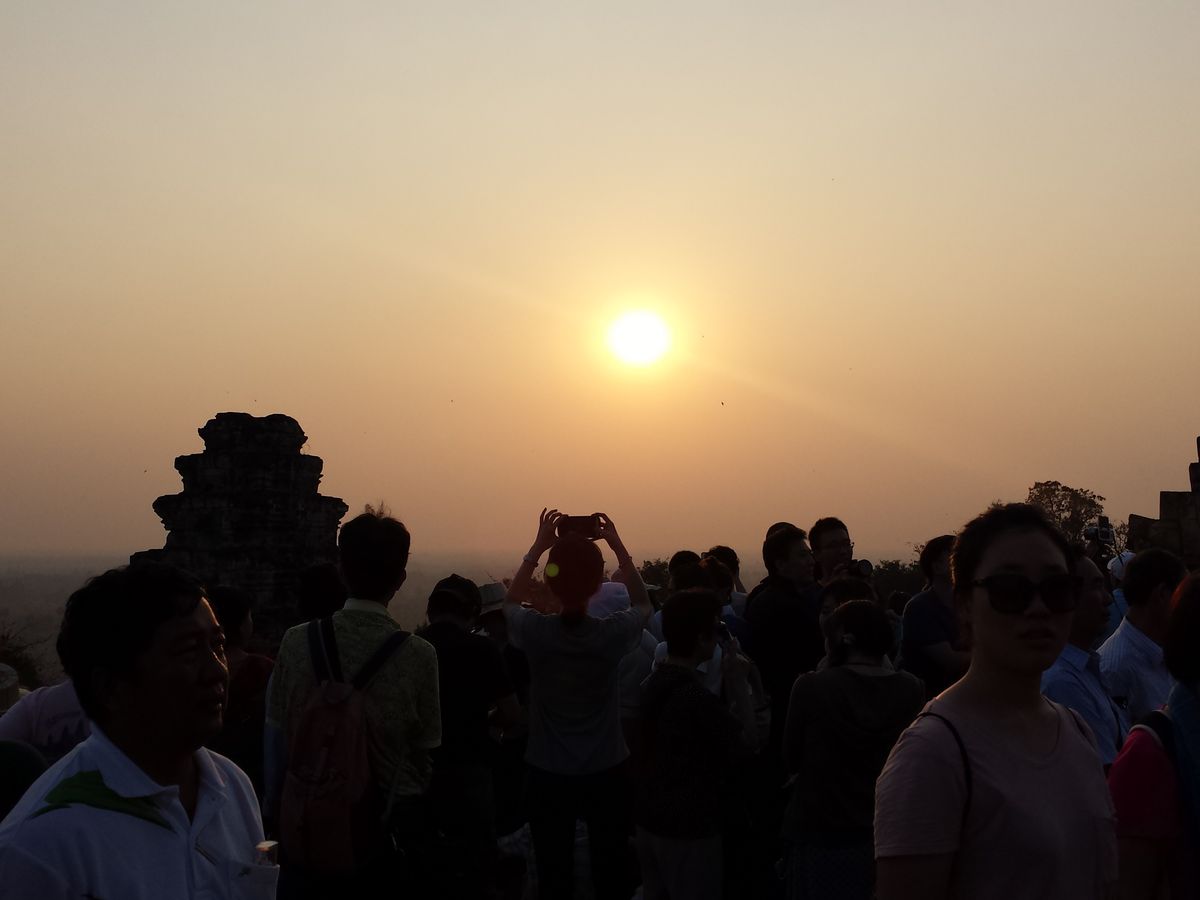 午後にアンコールワットに行き、近くの山へ登り(緩い登りで20分くらい)夕日を見ます。