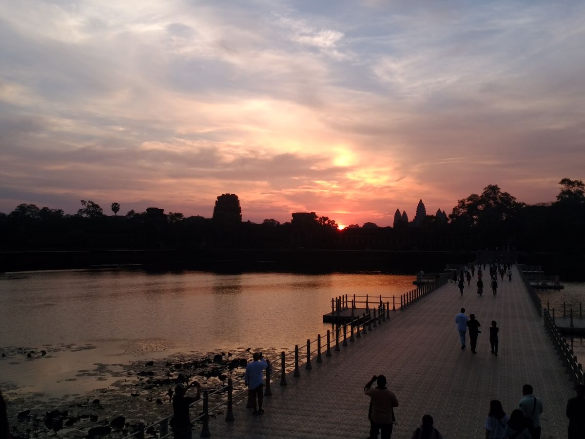 天気が曇りのため朝日は見ることはできませんでした。しかし、アンコールワット自体なかなか見れるものではなく、迫力があり感慨深い体験となりましたが、ガイドさんの距離感が近く一人旅ということもあったのか連絡をしつこく聞いてきたり、身体に触れようとしたりで不快でした。