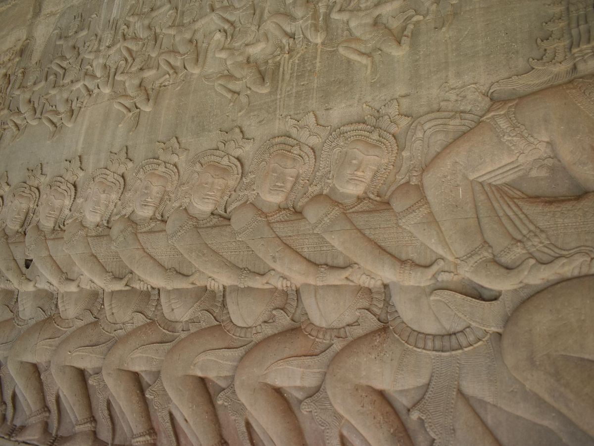 午後からプリアカン、バンテアイプレイ、ニャックポアン、タソム、東メゾン、プレループの6か所の遺跡を回ったが印象に残ったものはニャックポアンである。遺跡までの道のりで桟橋のようなところを通ったが湖というか池というのか大きな池に枯れ木が立ち並び印象的に思えた。ニャックポアンの遺跡も水につかっていたので人間、牛、象、獅子の水路がわからなかった。
