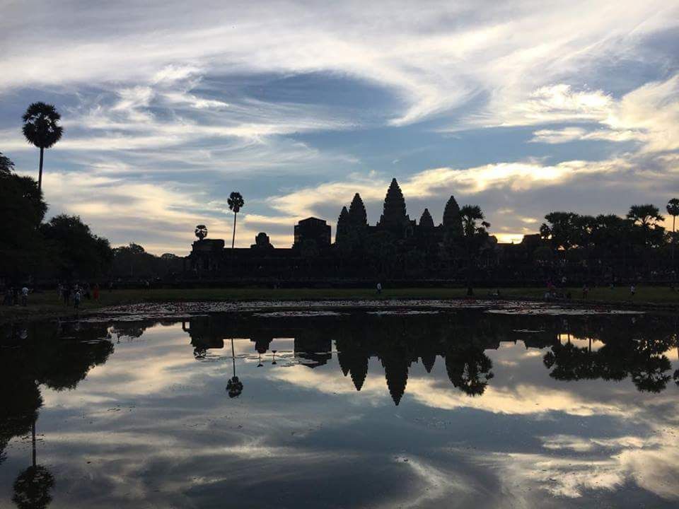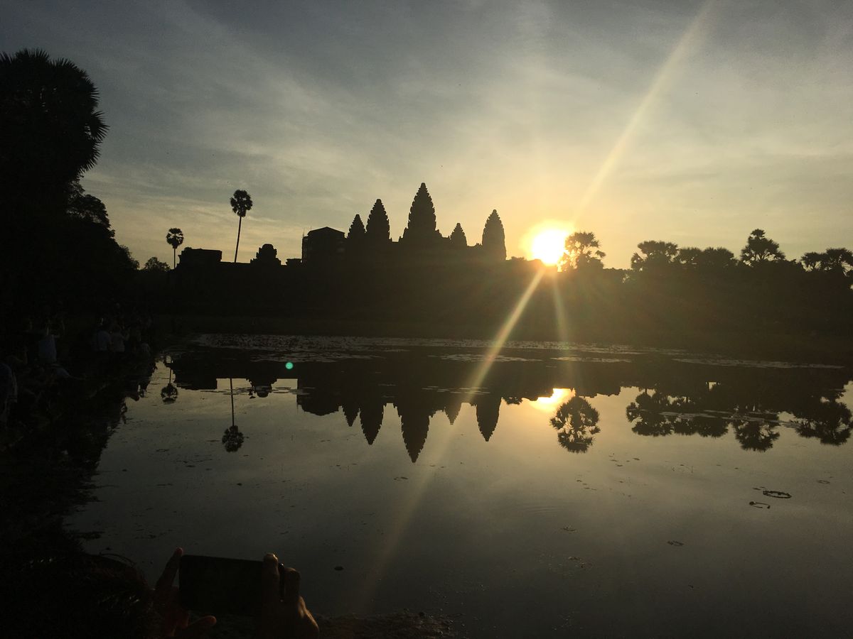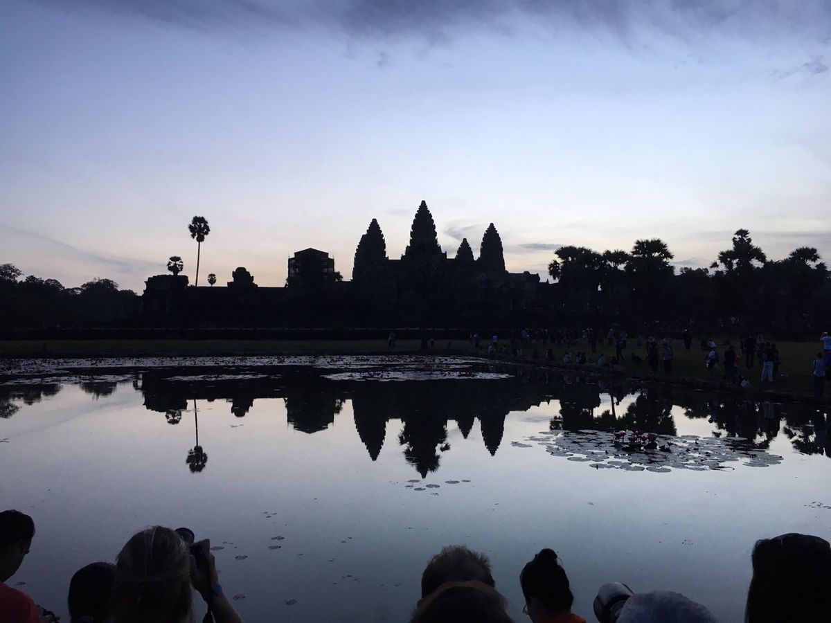 参加日は曇っていてグラデーションの朝焼けは見ることができませんでした。私は夕焼けに照らされたアンコールワットの方がきれいだと感じました。曇っていなければ素晴らしい景色を見れたと思います。