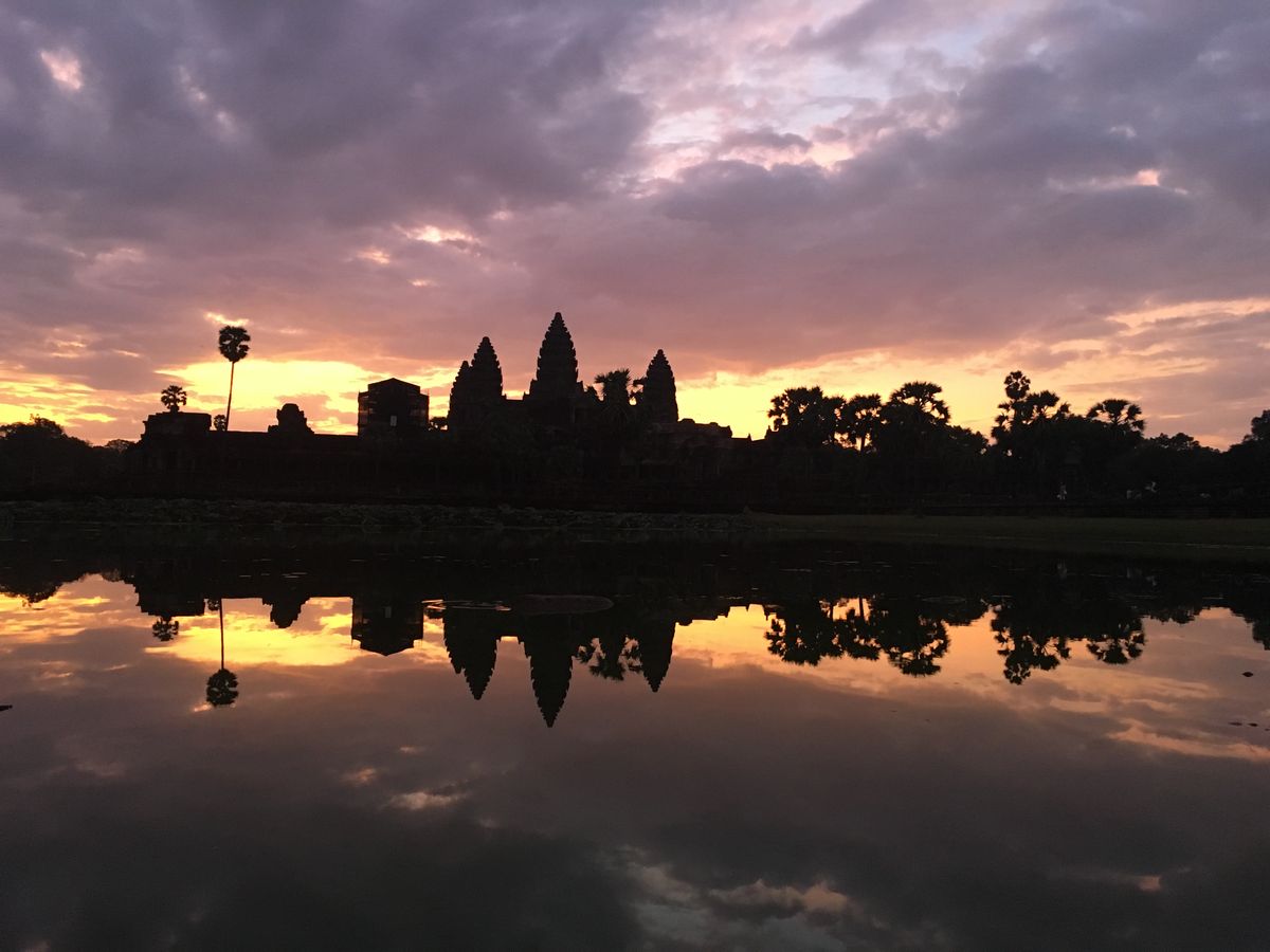 アンコールワットの朝日のお写真、幻想的な雰囲気でとても素敵ですね。