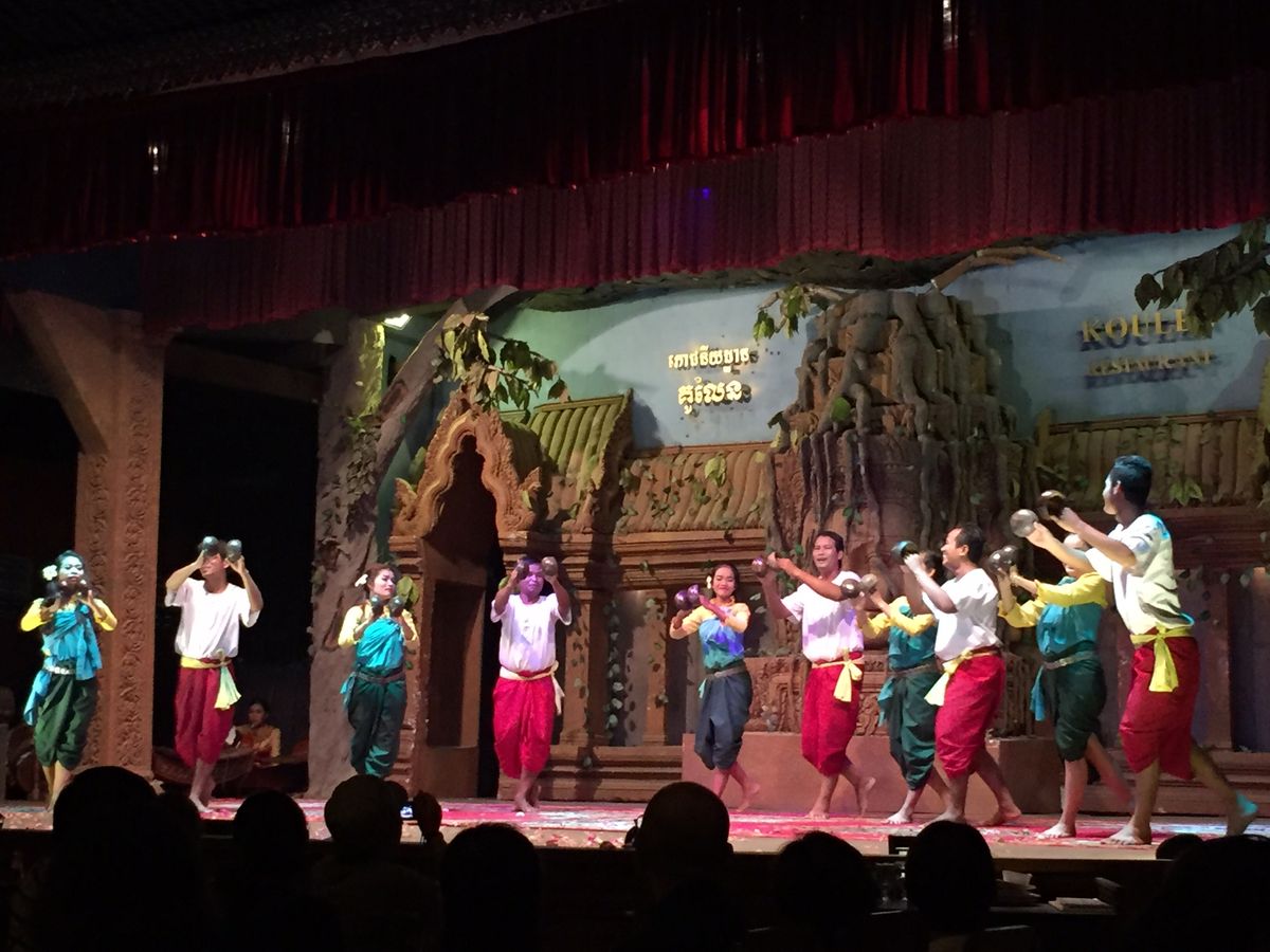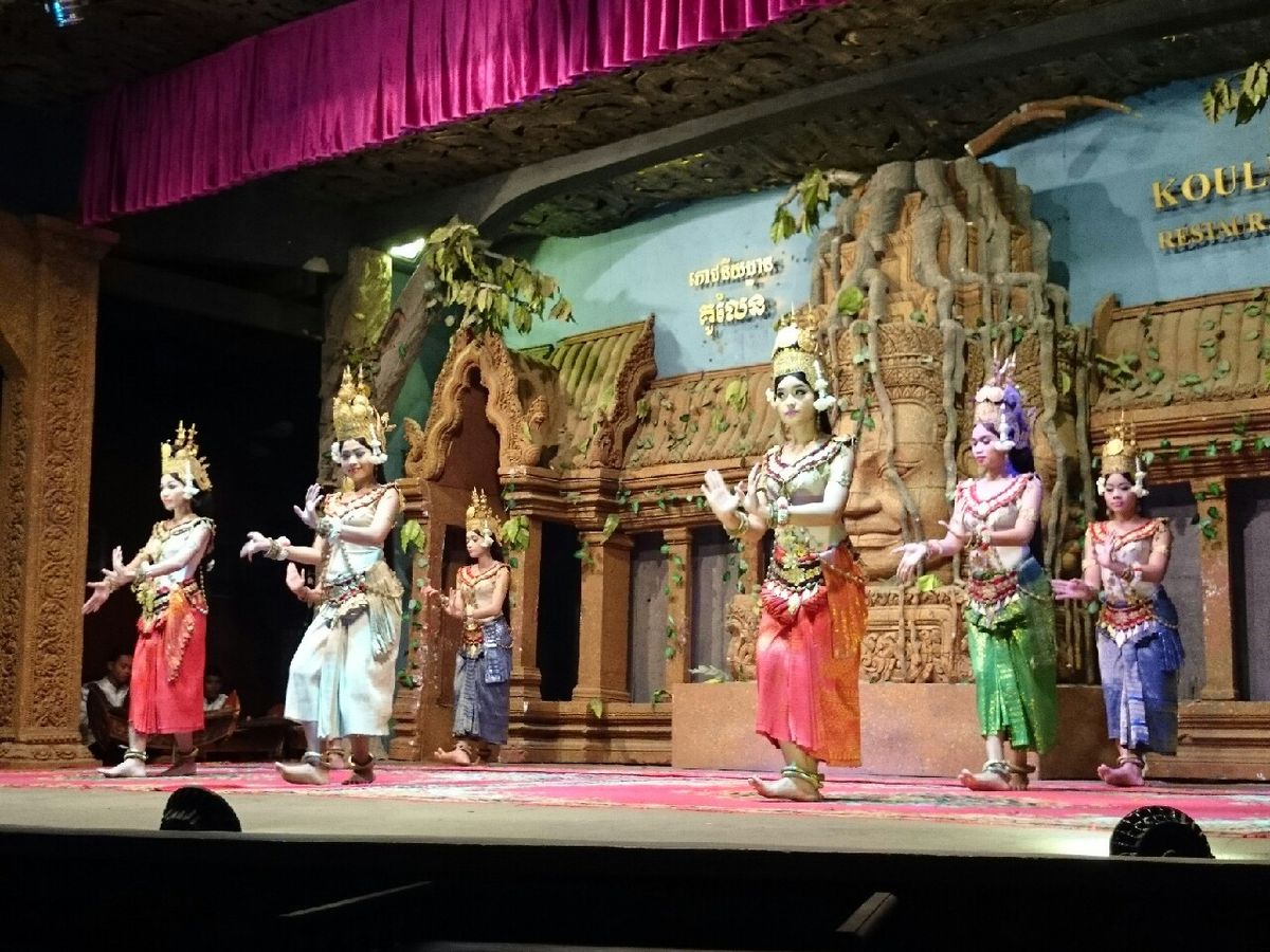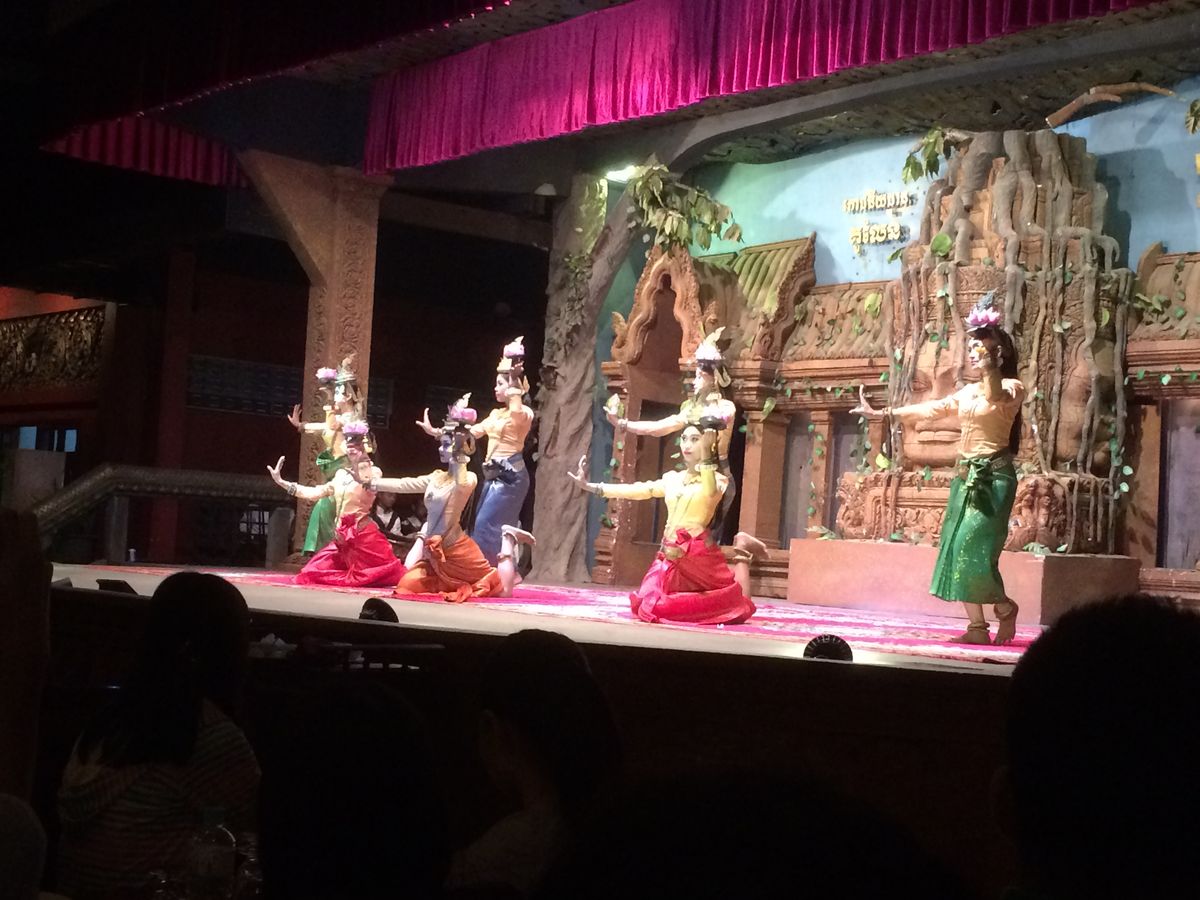 ツアーの最後はディナーショーです。会場はとても広くてブッフェの種類も多かったです。味はこんなもんかなといった感じでした。カンボジアのダンスは近隣諸国のタイ舞踊とは一味違って新鮮でした。