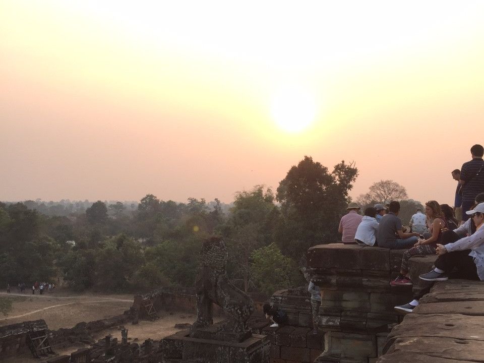 アンコールワット後は夕陽のスポットへ移動、頂上まではちょっとしたハイキングコースのようになっていました。山頂の遺跡は入場制限をしていて凄い人が入場を待つ為に長い行列をなしていました。幸い遺跡に入場せずともサンセットは拝めたので良かったです。