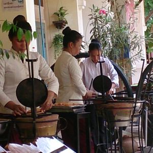 昼は事務所で日本食をイメージした現地食?(笑)その前後には定番のお土産ツアーが少々。これは仕方ないのかなと。アンコールクッキーは、空港よりも本店の方がお安いので、喜ばれるかたもいるのではないでしょうか。