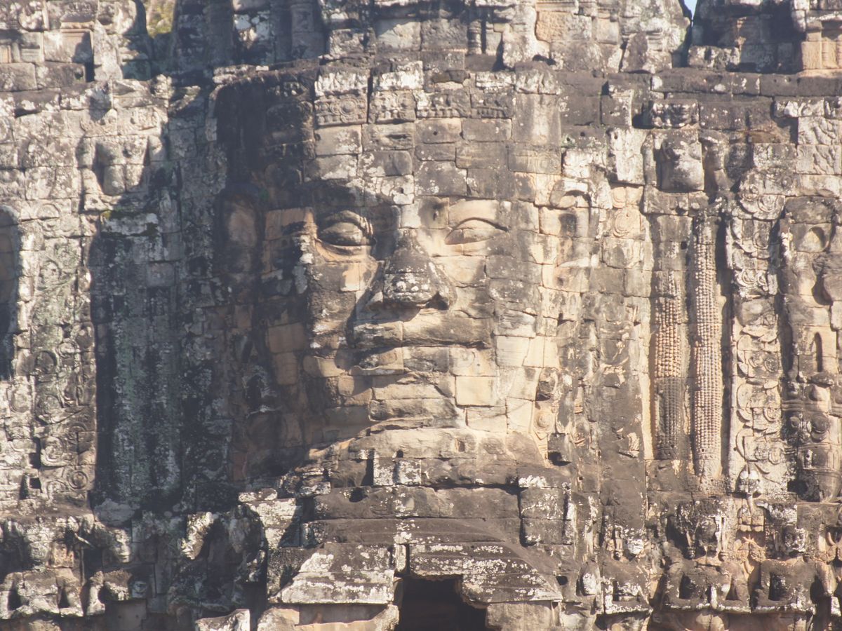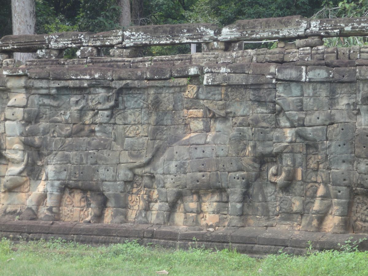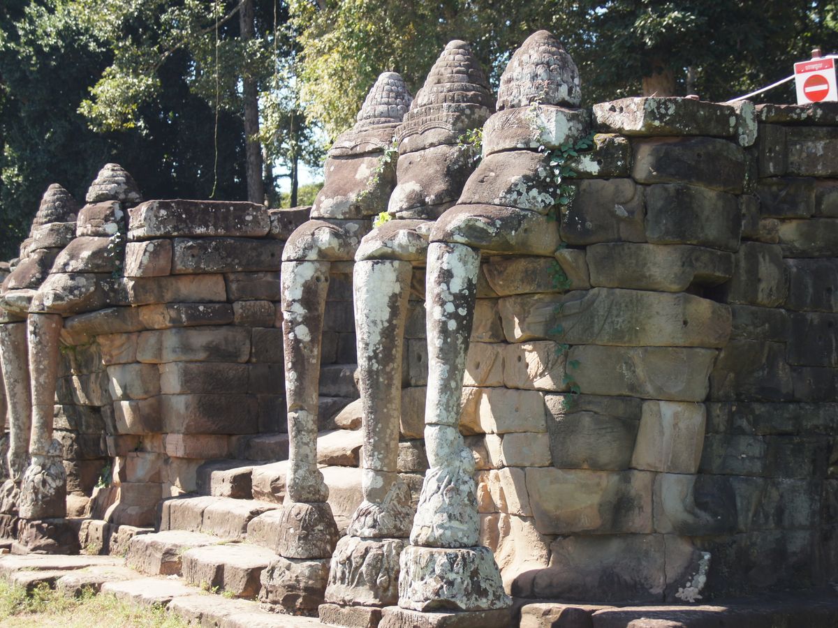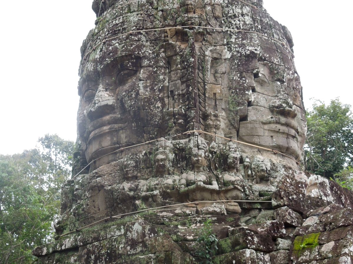車窓からタケオを見学しながらアンコール・トムに勝利の門から入場。象の広場を歩いて見学、回廊壁画を見ながらバイヨンへ。