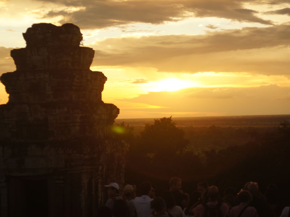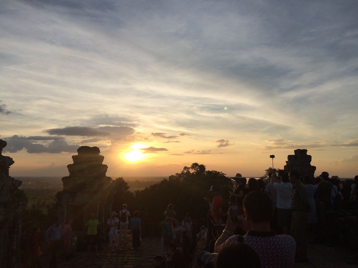 夕日鑑賞のプノンバケンは、300名までしか入れないため、ガイドさんが1時間ほど早めに連れていってくれたため、大勢の観光客がサンセット時間にビューポイントに入れず行列を作っているのを尻目に、悠々と夕日を満喫できました(ただし、頂上についた時はまだ日差しが少し強く、場所とりで同じ場所に居なければならないため、まぶしくて暑かったです。日傘があったら便利でした)。