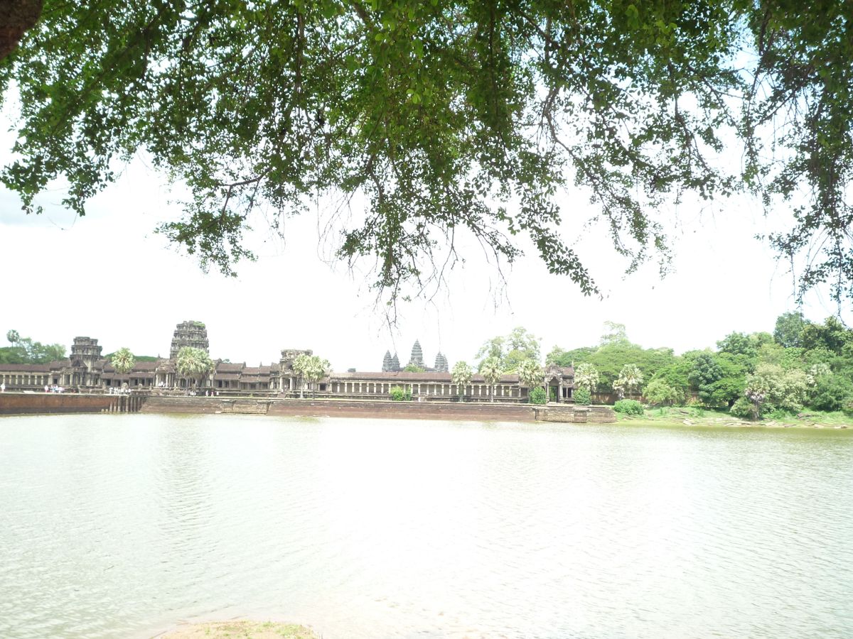 アンコールワットからみた朝日は絵葉書みたいな写真は撮れませんでしたが、水面に映るアンコールワットが印象的でした
