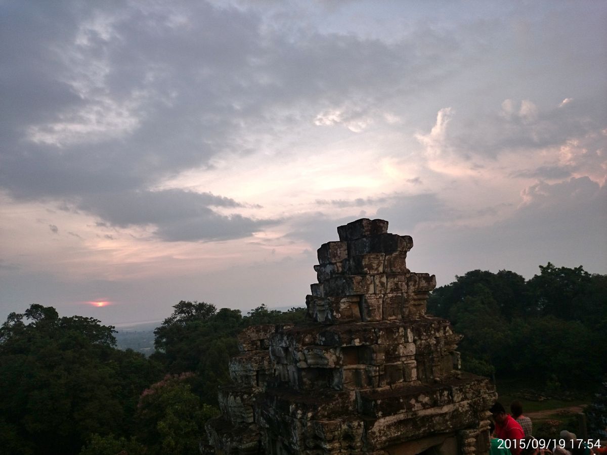 午後のメイン、アンコールワットは、たっぷりと時間が取ってあり、ゆっくりと見ることができました。プノンバケンの夕日は、とにかく疲れました。片道20分かけて山を登り、16時45分頃から長い列に並び、17時半過ぎにようやくプノンバケンに登れましたが、夕日は30秒ほどで沈みました。山に登らなかった方もいらっしゃいましたし、この夕日に体力と時間をかけるのならば、アンコールワットの夕日を見たかったかなと思ったり。でも、夕日にギリギリ間に合い、虹も見られて良かったです。
